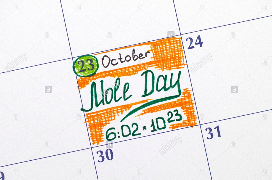 Svake godine u mjesecu listopada točnije 23.10. od 6 sati i dvije minute ujutro do 6 sati i dvije minute popodne slavi se „Mole Day“, dan obilježavanja Avogadrovog broja, odnosno broja jedinki u jednom molu tvari.